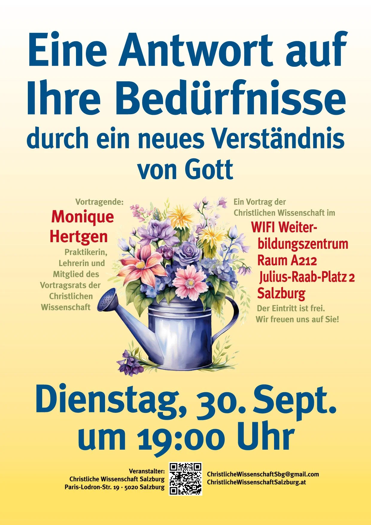 Präsenz-Vortrag: »Eine Antwort auf Ihre Bedürfnisse – durch ein neues Verständnis von Gott« in Salzburg